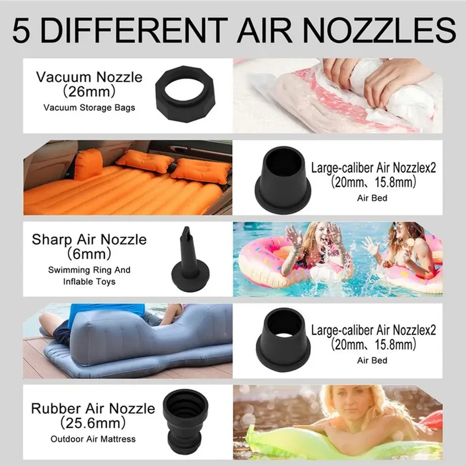 packing list:Air pump/air nozzle five-piece set/Type-c charging cable/storage bag/instruction manual