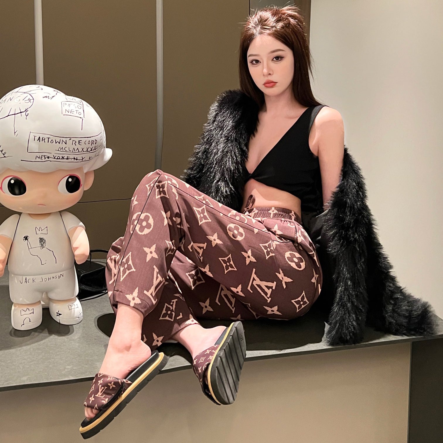 print wide-leg pants