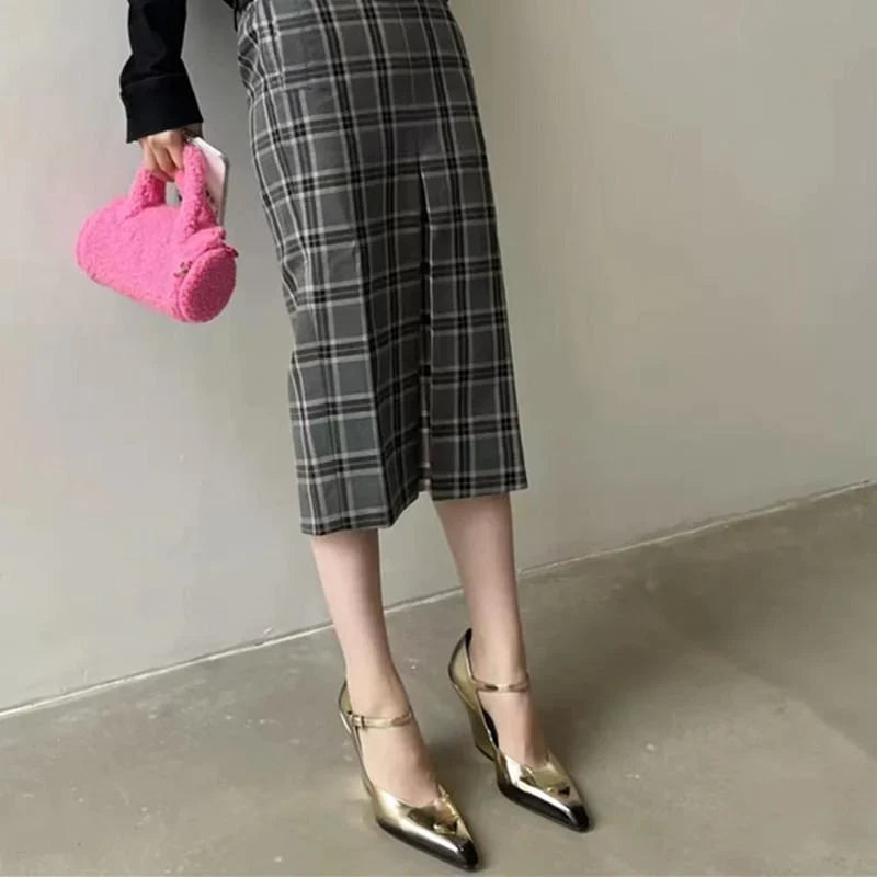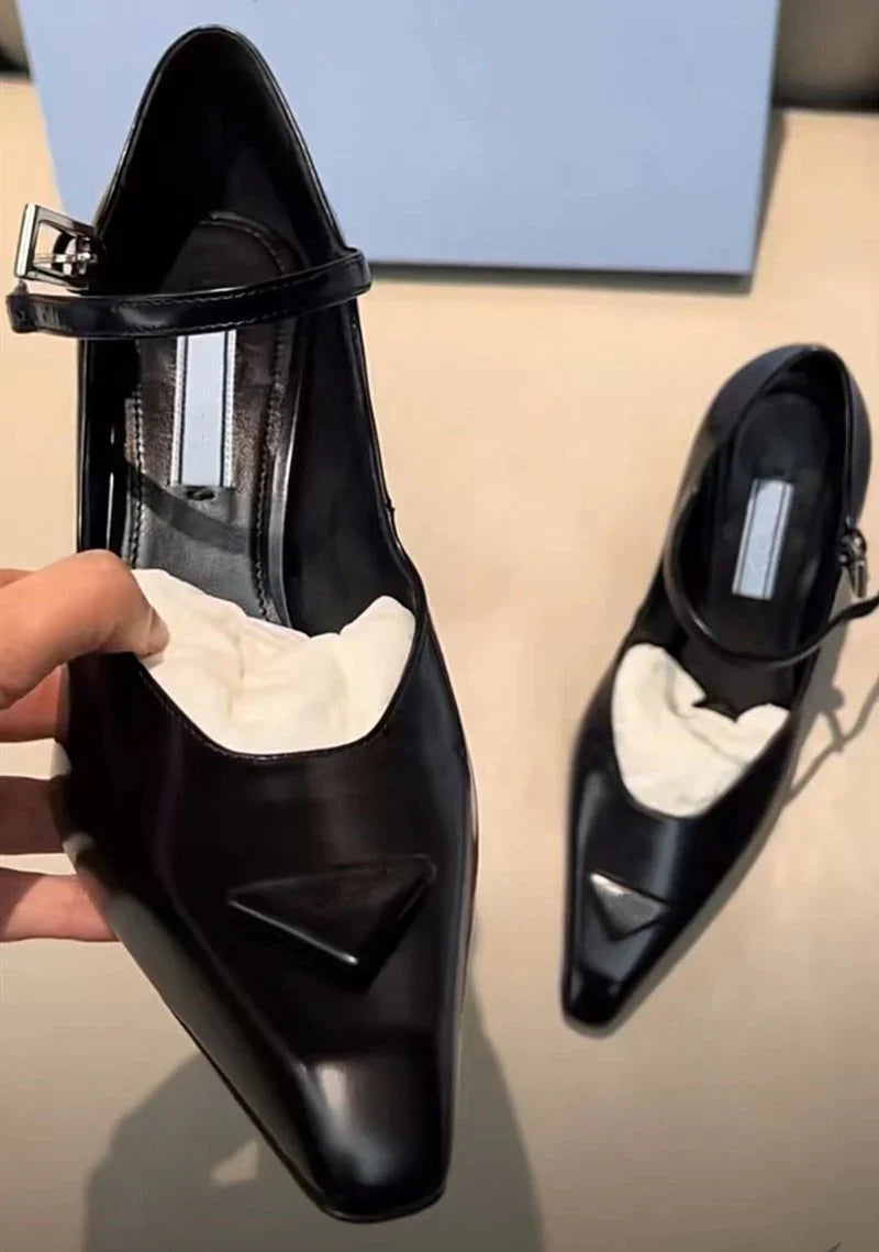 New Retro Shallow Mouth Pointed Mary Jane Single Shoes 1023122808